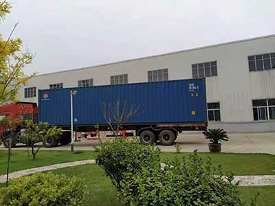 印尼客戶訂購的洗滌設備裝箱發(fā)貨,設備全用木托固定,收緊帶捆綁。